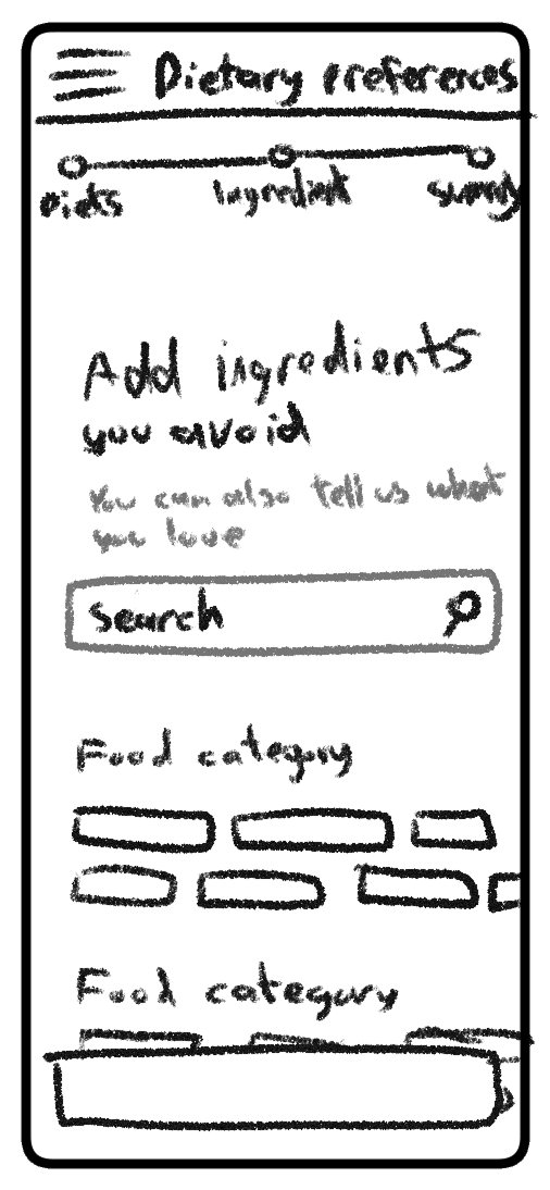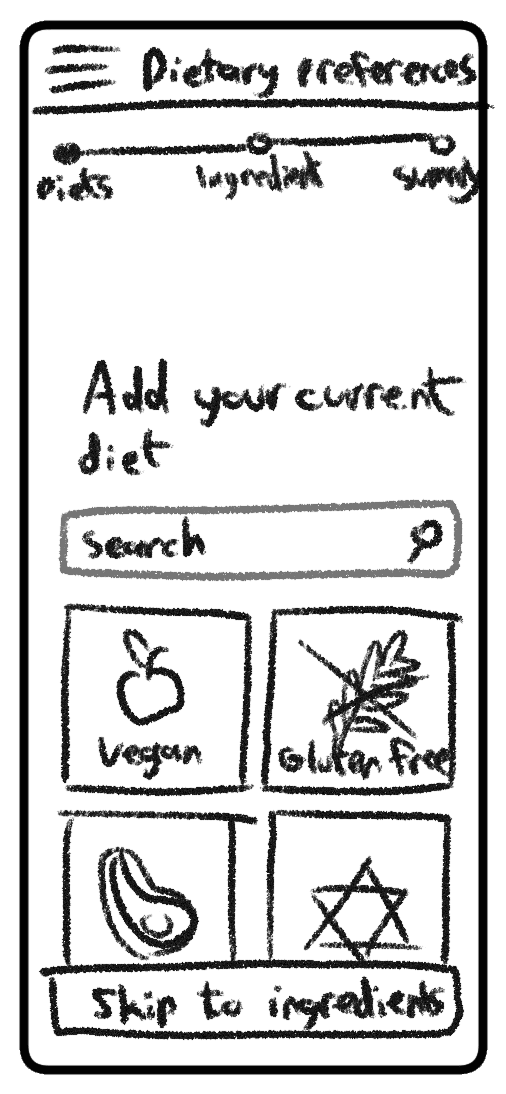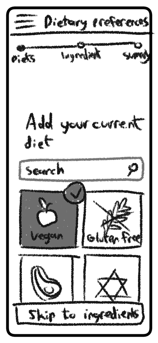 In this section, users fill in their dietary preferences. This can include a diet or specific ingredients.
