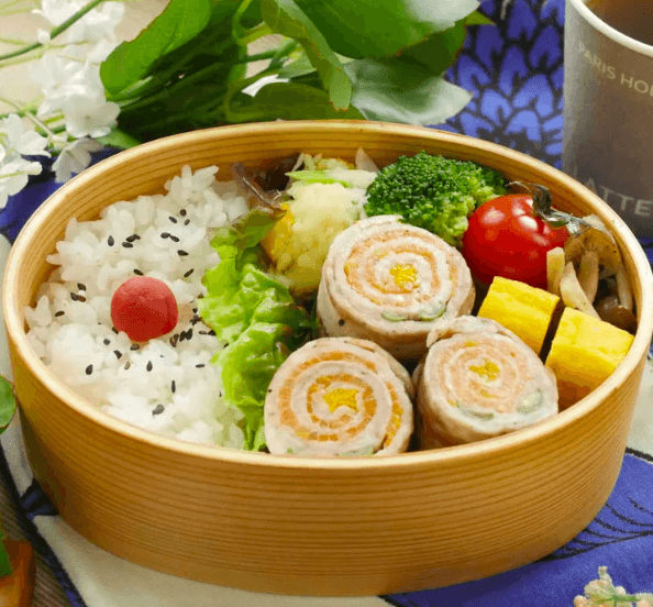 A bento box is a Japanese boxed meal consisting of several different food types.