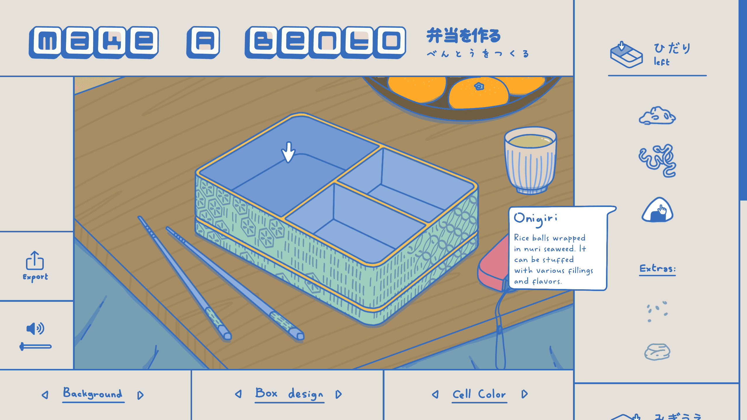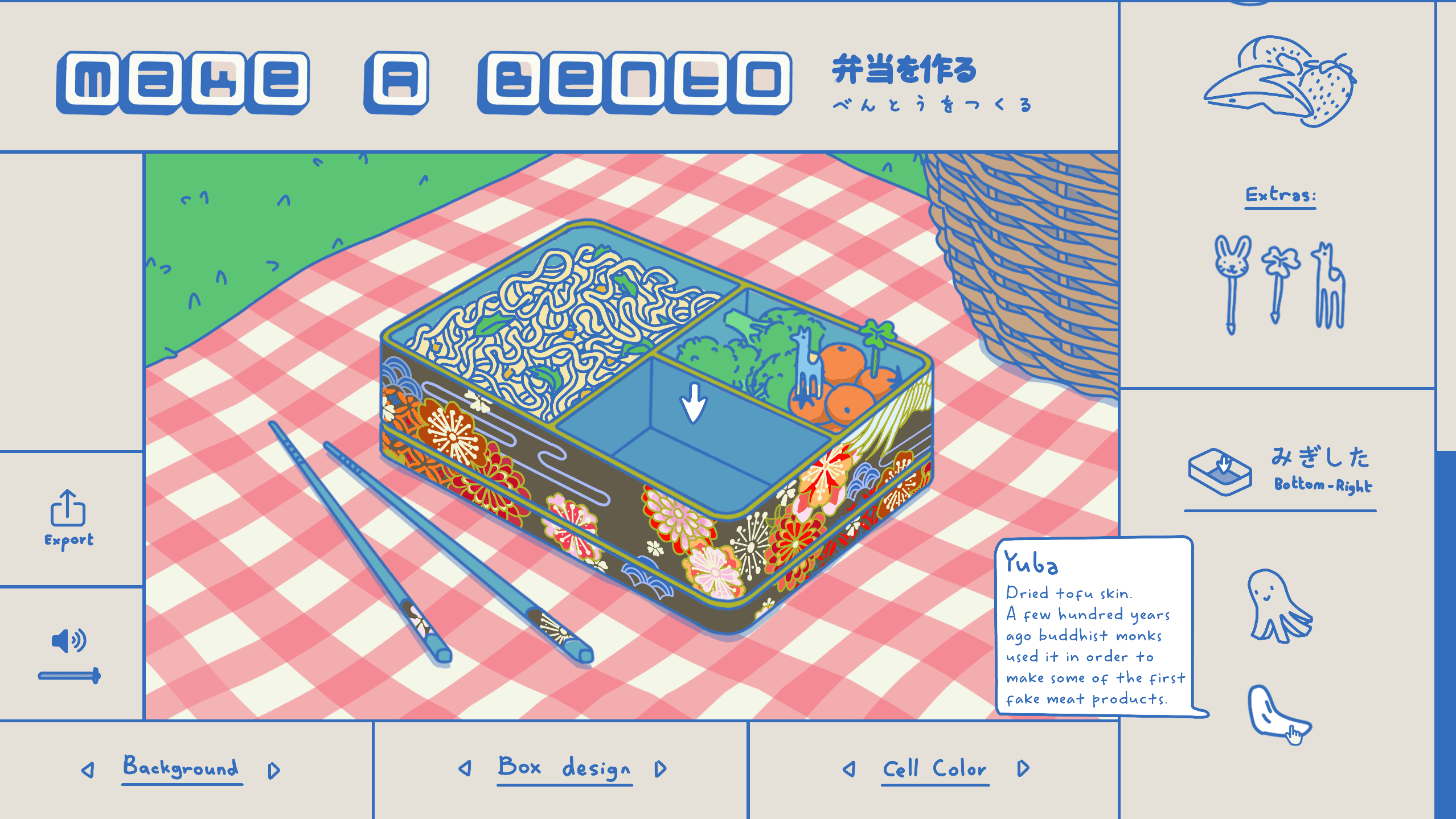 I decided to create a game that lets you customize a bento box.